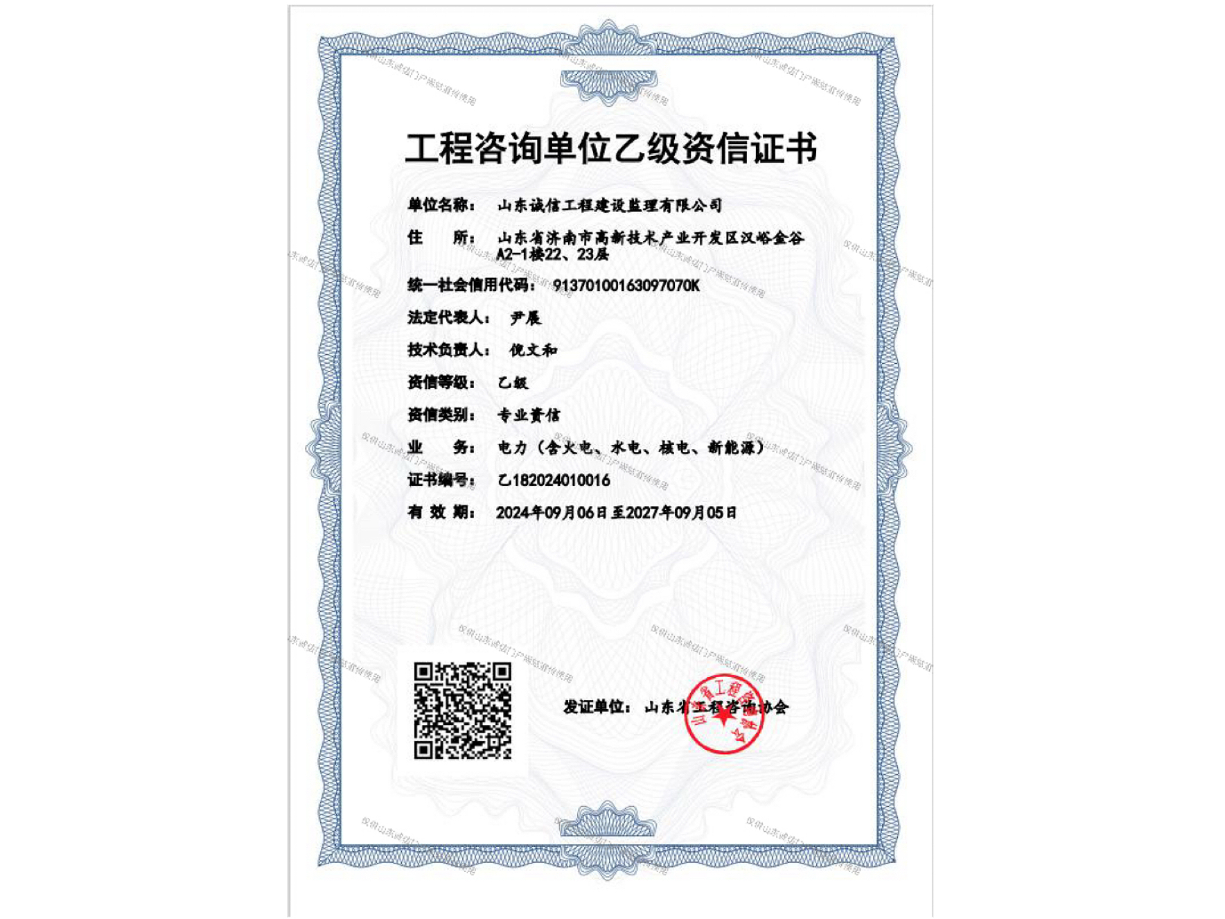9、工程咨詢單位乙級(jí)資信證書(shū)