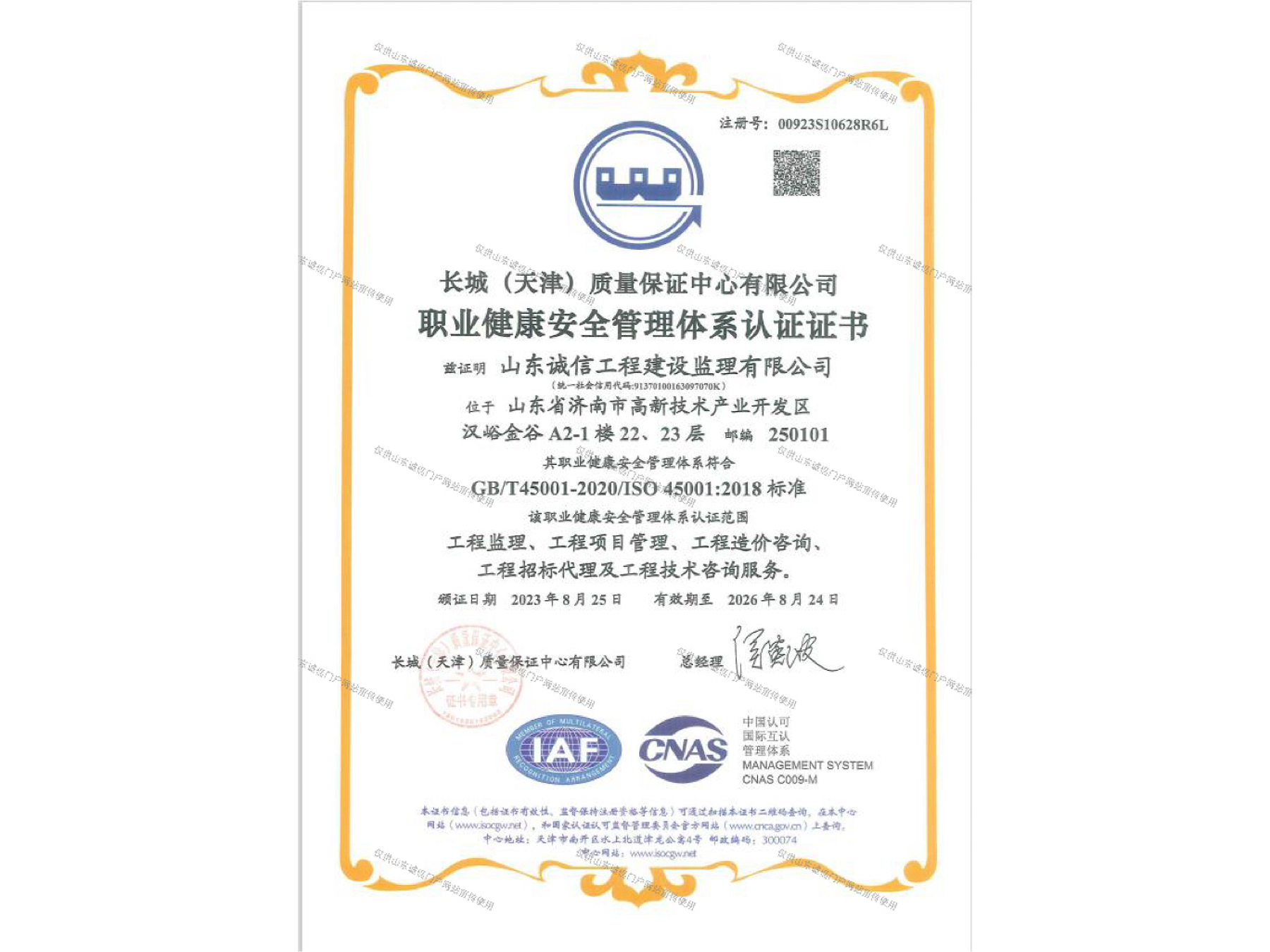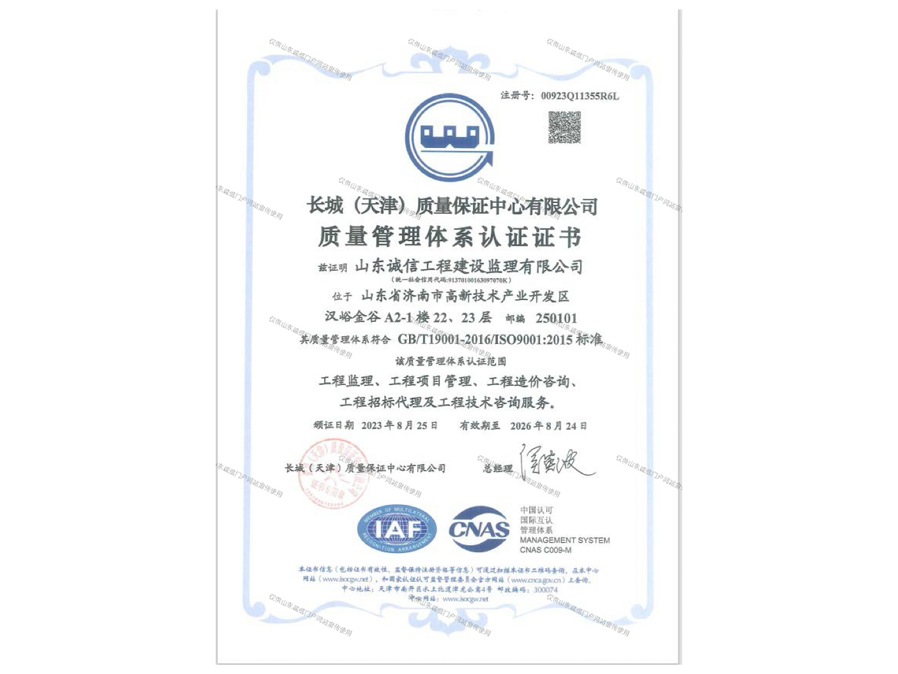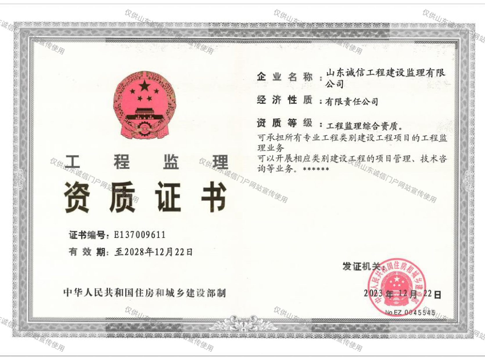 住建部綜合監(jiān)理資質(zhì)證書