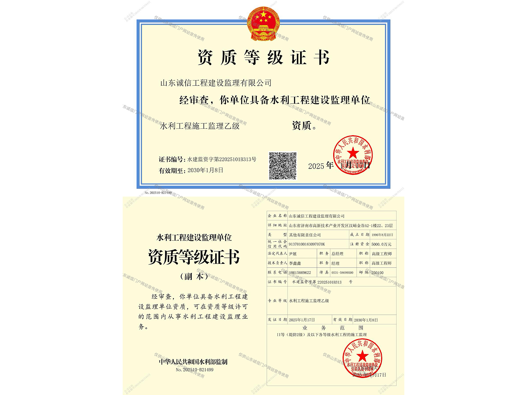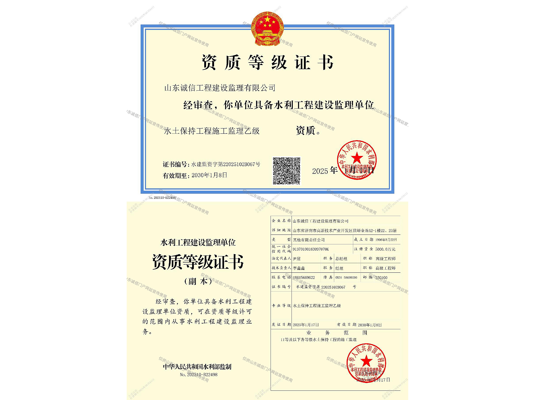 水利部工程施工監(jiān)理資質(zhì)證書